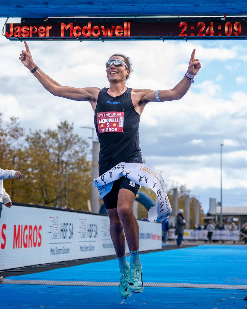 Le Genevois Jasper McDowell, vice-champion suisse, a remporté sa première grande victoire sur le marathon lausannois. Deuxième en 2024, il s’impose cette année en 2h24’10, après une course parfaitement gérée.